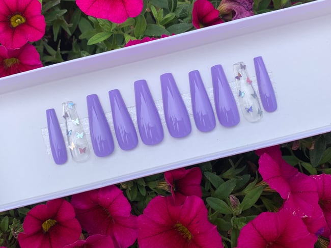 If it were to pick one of these purple nail design ideas this would probably be the winner. Butterfly Nails Press On Nails Lilac Purple Nails Holographic Nail Art Gel Nails Coffin Shape MediumLong Length By RubyPolish RubyPolish 5 out of 5 stars 24 1837. Purple is one of the hottest colors for autumn winter 2020-2021 and not only for our clothing but also for our hands.