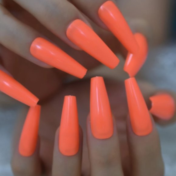 Amazon Com Coolnail Fashion Solid Color Neon Orange Extra Long Ballerina Coffin Uv False Nails Flat Finger Fake Nail Press On Party Salon Nail Art Beauty
