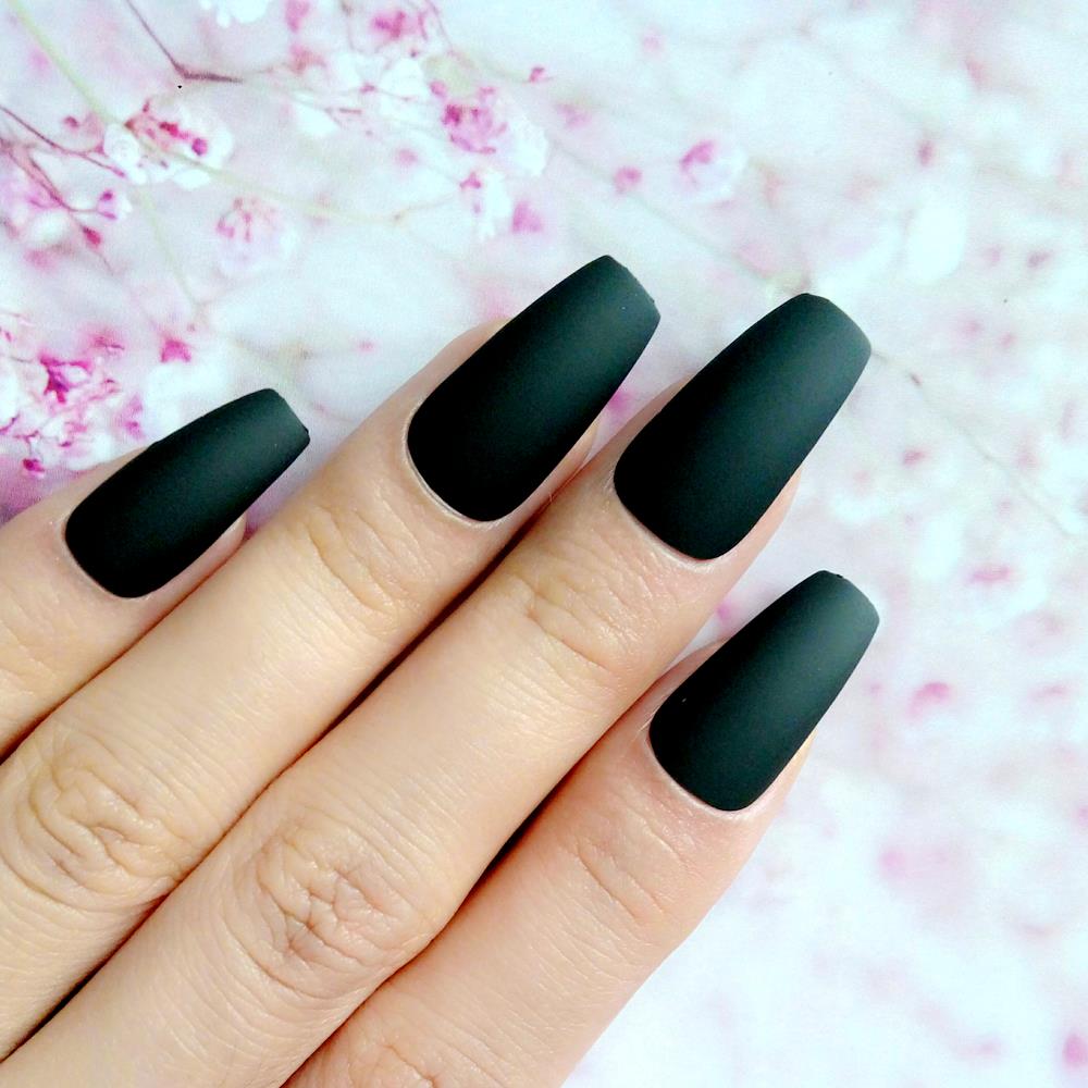 Matte black nails are perfect for those who want a little drama in their lives. Black Nails Matte or GlossyChoose shape Set of 20 False nails Fake nails Press on nails Black nails Coffin nails ballerina nails PicturePlurfect From shop PicturePlurfect. 1Clean and buff natural nail gently.